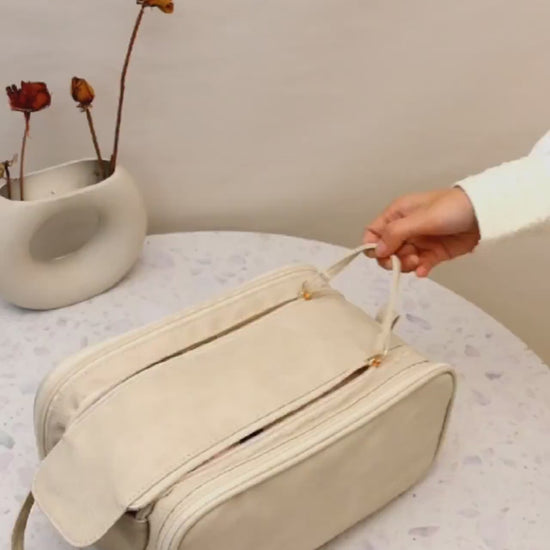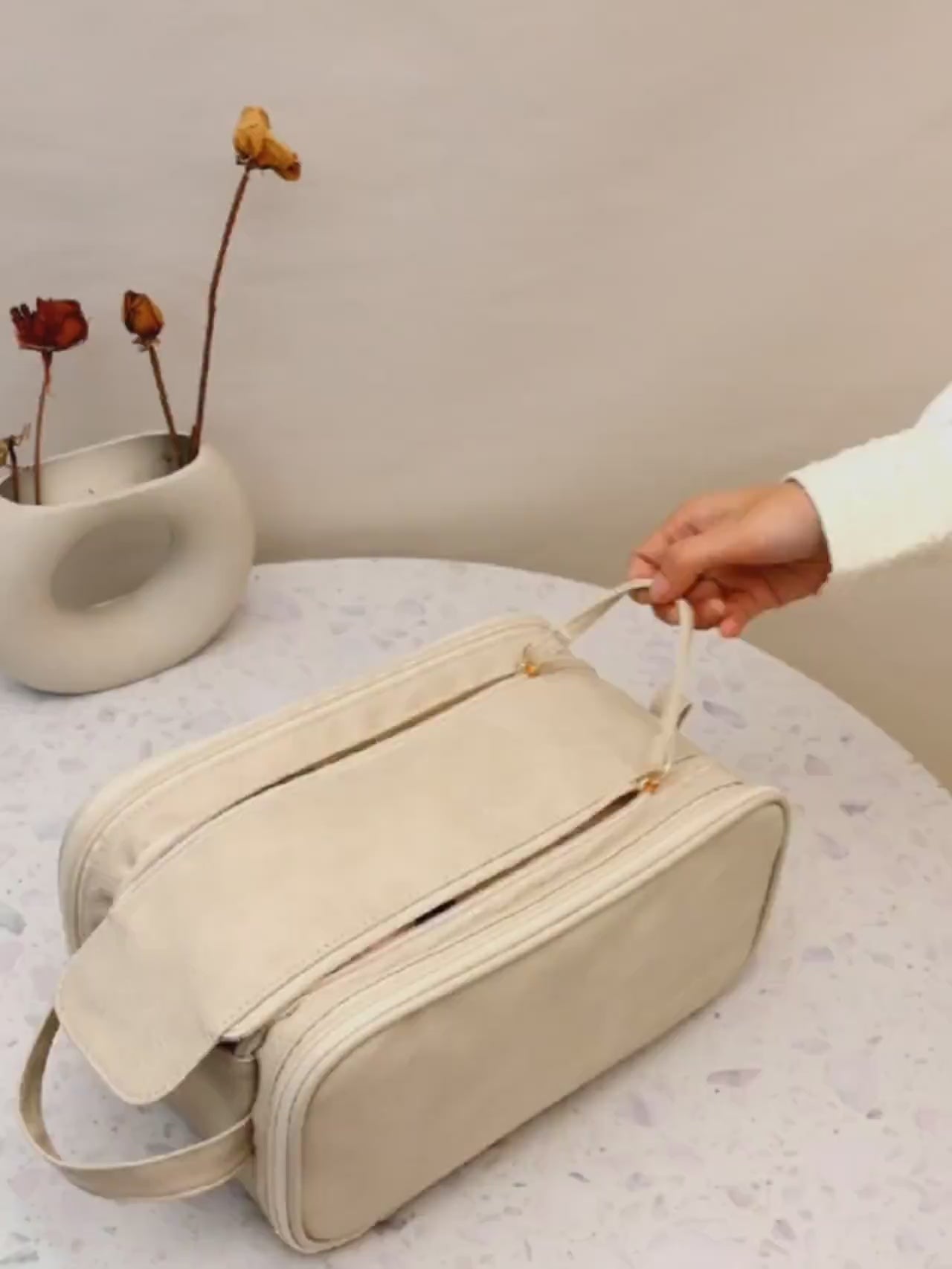 Mit unserer hochwertigen Make-up-Reisekosmetiktasche sind Deine Beauty-Essentials immer perfekt organisiert und sicher verstaut – egal ob auf Reisen, im Alltag oder für unterwegs. Diese stilvolle und funktionale Tasche ist die ideale Lösung für alle, die ihre Kosmetikprodukte jederzeit griffbereit und geordnet aufbewahren möchten.